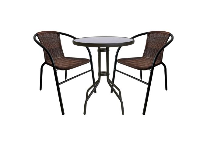 The focal point is the VENETTO bistro table, featuring a sleek black metal frame and a sophisticated, easy-to-clean tempered glass tabletop that is ideal for your morning espresso or evening drinks. It is paired with two ergonomic BRAVA chairs wrapped in rich, weather-resistant brown polyrattan. Designed to endure changing Canadian seasons, this set guarantees your outdoor retreat stays fresh despite exposure to Quebec sun, rain, and temperature shifts. When you need to reclaim your patio space, the chairs conveniently stack together for incredibly efficient storage.