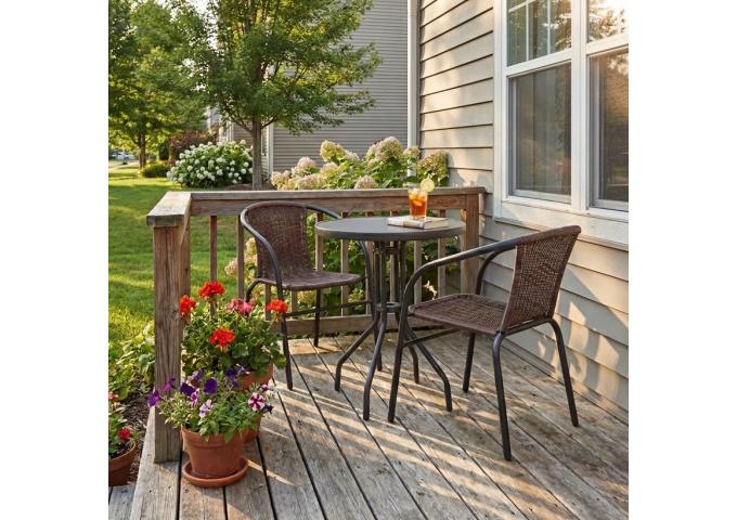 Transform your compact Laval balcony or tight patio space into an inviting outdoor café with the JYSK VENETTO & BRAVA 3-Piece Round Bistro Set. Perfectly designed for urban living and small footprints, this stylish set delivers high-end functionality without overwhelming your outdoor area.