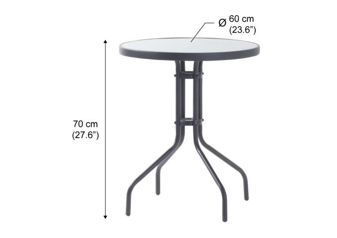 Table Dimensions: 23.6" (60 cm) W x 23.6" (60 cm) D x 27.6" (70 cm) H. (Max load: 110.2 lbs / 50 kg).
