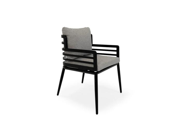 • Abella Dining Chairs: Four sturdy, lightweight black extruded aluminum chairs that are easy to move.