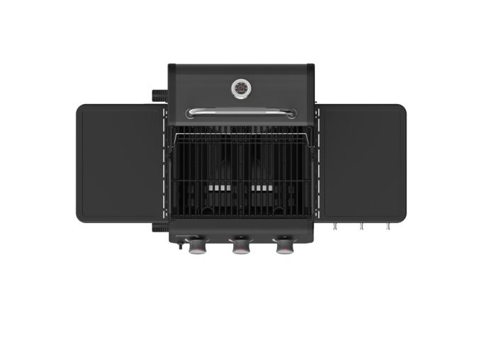 Starting your grilling session is effortless thanks to the reliable piezo ignition system, offering instant flame-ups. Monitoring your cooking progress is made simple with the integrated lid-mounted temperature gauge, providing precise readings without lifting the lid and losing heat. Practicality is also a key design element, featuring two sturdy side shelves complete with tool hooks. These provide essential space for food preparation, platters, and keeping your grilling utensils organized and within easy reach, enhancing your overall outdoor cooking workflow.