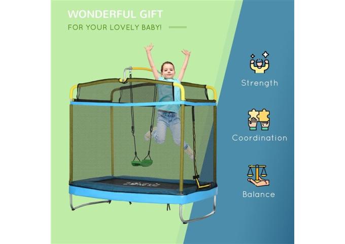 Don't miss the opportunity to bring boundless excitement and healthy fun to your children's lives. The Qaba 6.9-ft Light Blue 3-in-1 Mini Trampoline is more than just a toy; it's an investment in active development and unforgettable memories. While an online exclusive, you can secure this fantastic play set for your Laval home. Enjoy hassle-free delivery directly to your doorstep. Elevate your backyard experience and give your children the gift of dynamic play with this exceptional Qaba trampoline. Order now and let the adventures begin!