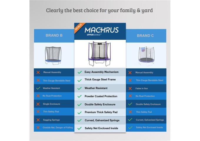 Don't miss the opportunity to bring exhilarating fun and healthy activity to your family. The Upper Bounce Machrus 14 FT Round Trampoline Set with Safety Enclosure System is more than just a toy; it's an investment in your family's well-being and happiness. Turn your backyard in Laval into the ultimate destination for adventure and laughter. Explore this incredible trampoline and prepare for a season of unforgettable memories!