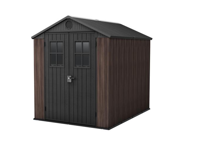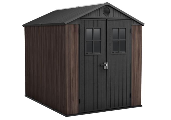 Abri de Rangement Extérieur Keter Darwin en Résine avec DecoCoat, Brun, 6x8 pi - Solution Durable et