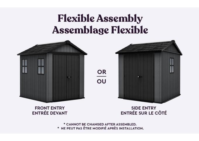 - Accès Flexible : De larges doubles portes peuvent être installées de chaque côté de la remise de rangement lors de l'assemblage, offrant un accès personnalisable pour s'adapter à l'aménagement de votre cour. Bien que la configuration soit fixée après l'assemblage, cette flexibilité initiale est un avantage significatif.